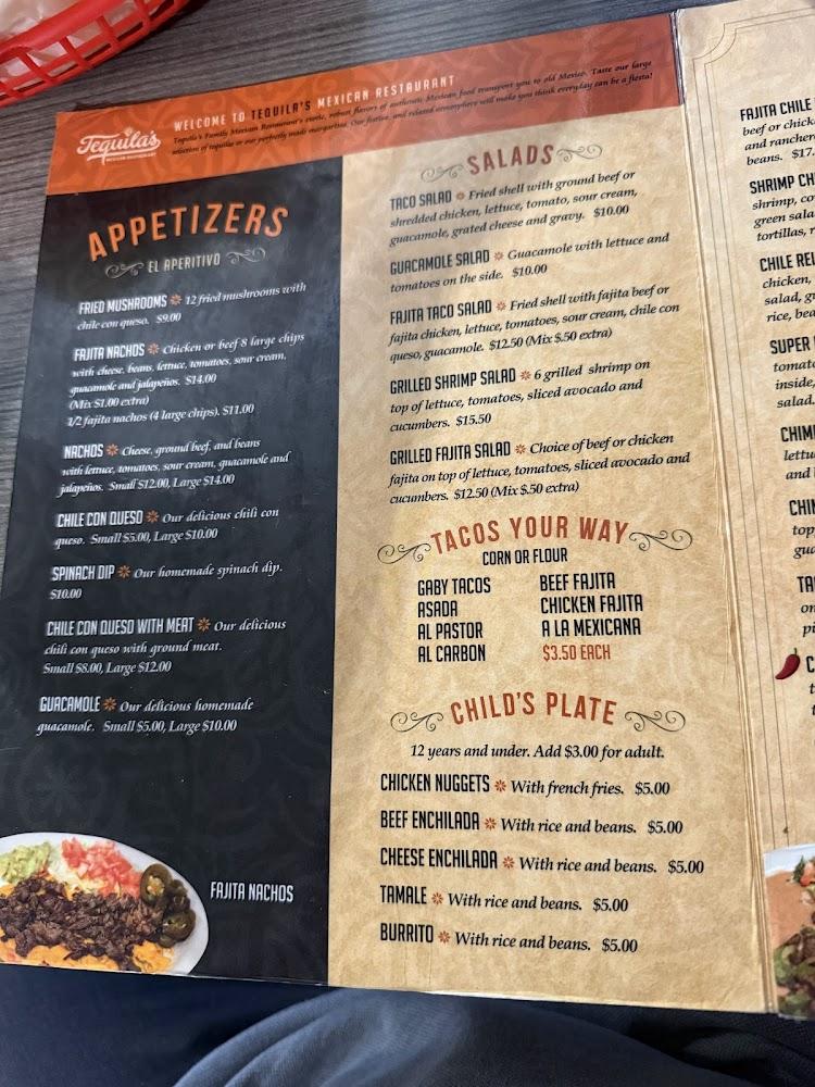 Tequila's menu is a delightful mix of traditional Mexican and Tex-Mex dishes. Popular choices include the beloved fajitas, flavorful tacos, and hearty enchiladas. The menu caters to various tastes, ensuring everyone finds something they love.